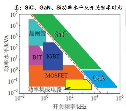 • SiC功率器件可解决800V平台适配痛点。800V平台对零部件提出了高绝缘耐压、高转换效率以及低开关电磁干扰等要求,传统硅功率器件已无法满足。碳化硅功率器件宽禁带、绝缘击穿场强大,具备更高的耐压性能和导热性。