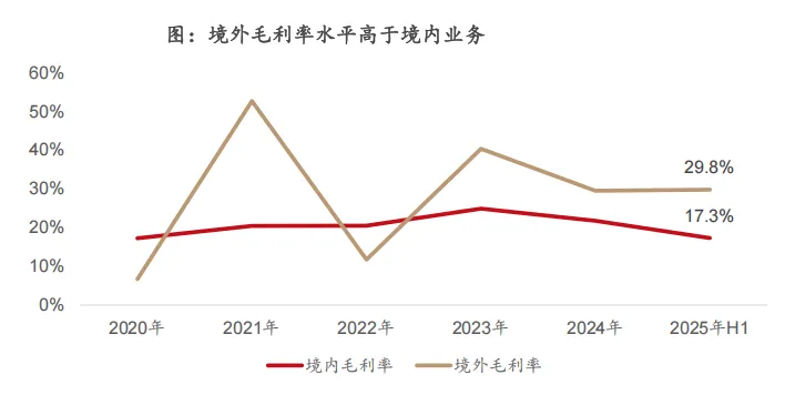 驱动因素二:境外业务毛利率高10pct以上,头部厂商纷纷布局出海