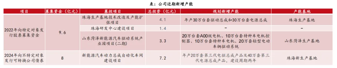 新增自动化产能预计2026年投产。公司于2024年启动可转债融资,拟投资7.2亿元建设动力总成自动化车间,达产后预计可年产20万套电驱总成产品及40万套电源总成产品,有助于公司进一步提高生产自动化水平及规模化优势。