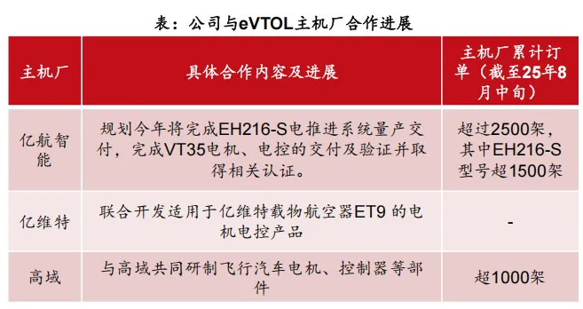 公司在evtol领域卡位优势突出,合作亿航智能等头部主机厂,有望打开第二增长曲线。凭借“集成芯”技术,公司电驱功率密度较行业平均水平提升约20%-30%,具备技术卡位优势。