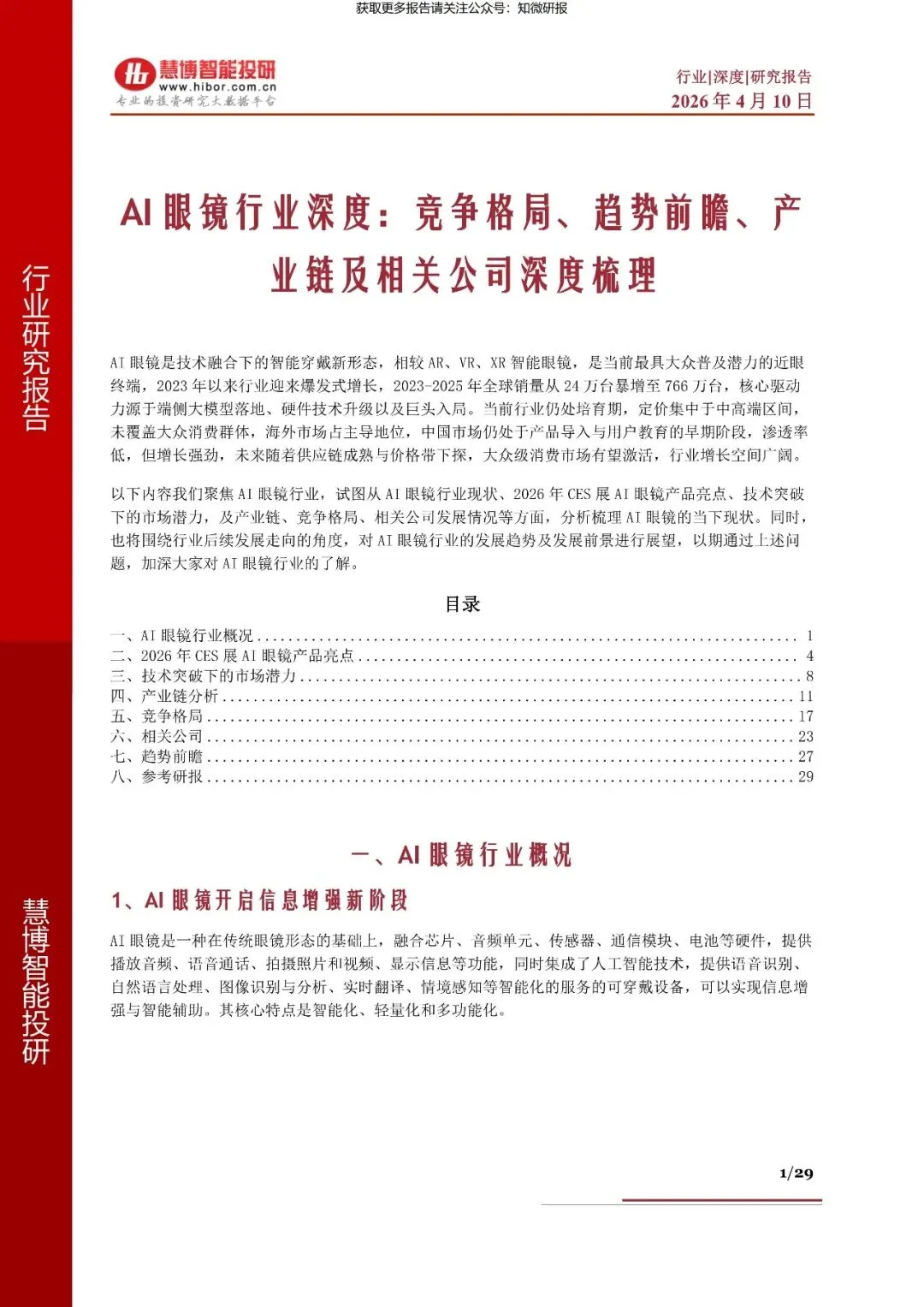 【慧博投研】AI眼镜行业深度:竞争格局、趋势前瞻、产业链及相关公司深度梳理