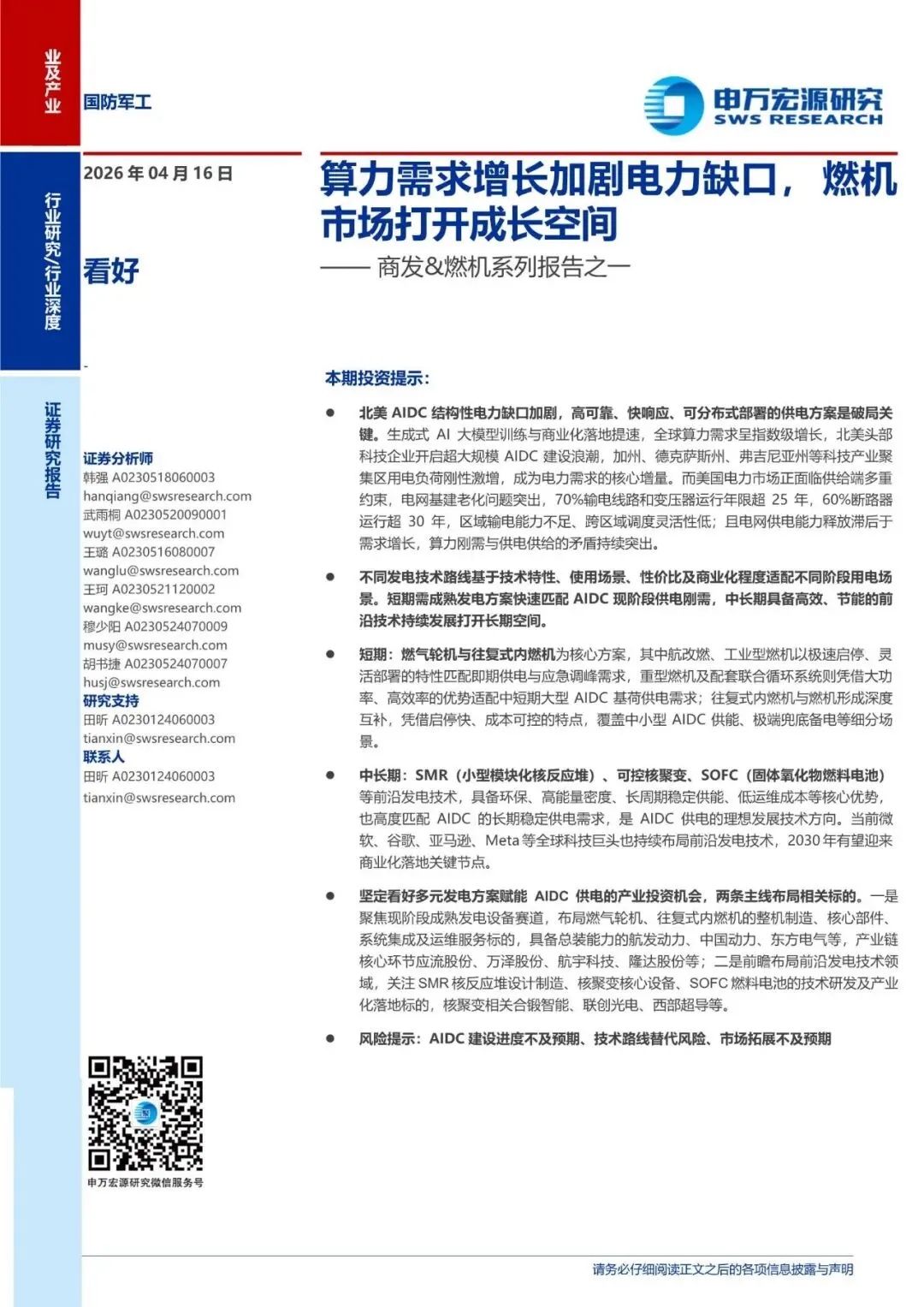 国防军工行业商发%26燃机系列报告之一:算力需求增长加剧电力缺口,燃机市场打开成长空间-260416-申万宏源-24页