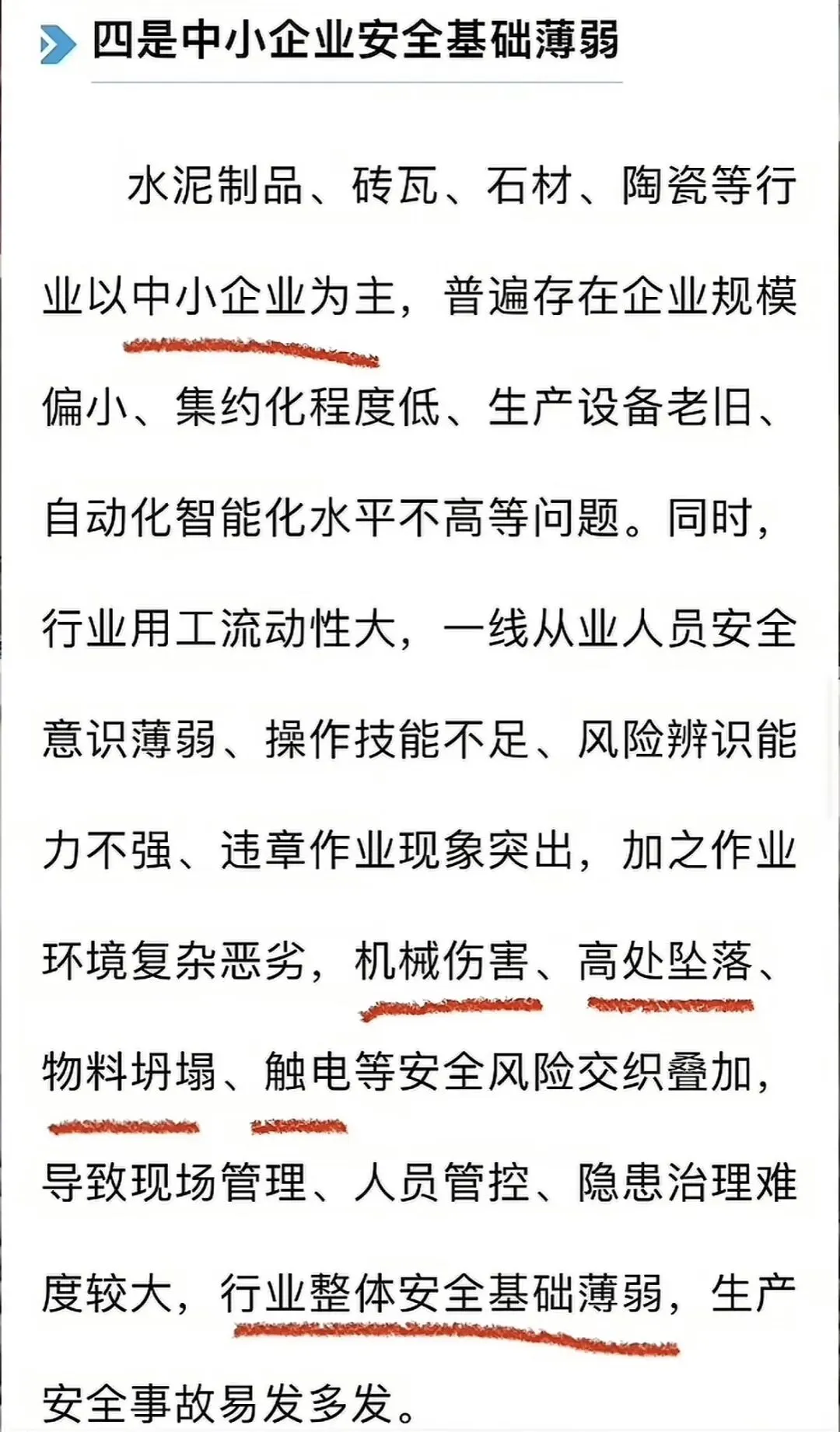 2025年建材行业共发生了较大事故3起,SW10人,看着其实不多。但是在整个工贸行业当中,建材行业其实已经算是风险高位了。10万人的SW率为十万分之三点八八,这个数字甚至超过了部分的高危行业。这些事故都是哪些企业出的?主要集中在水泥、砖瓦、石材的加工企业。