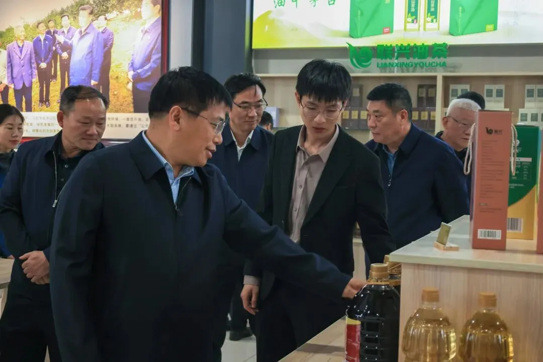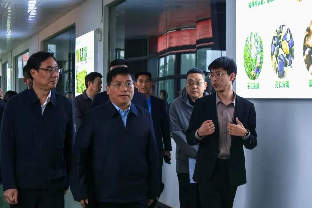 调研组走进司马光油茶园、联兴油茶加工厂、联兴产品展厅,实地调研油茶全产业链标准化试点建设工作。