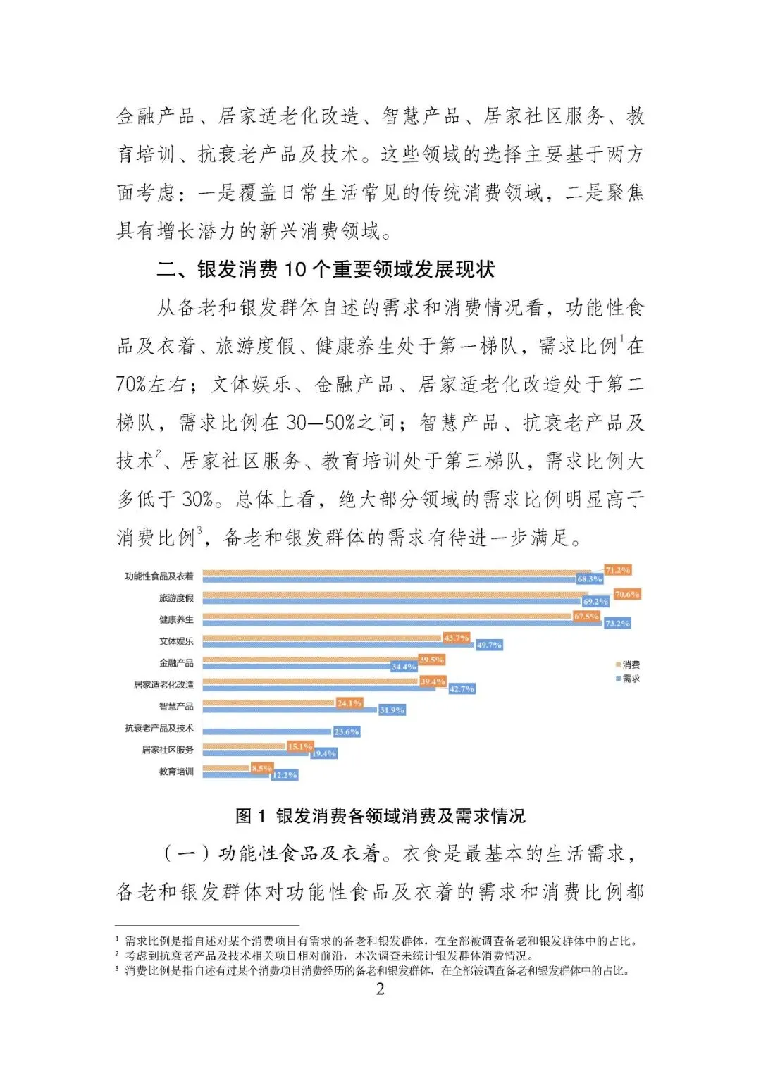 从消费结构看,传统领域占据主体,新兴领域快速起势。功能性食品及衣着、旅游度假、健康养生、文体娱乐等成熟赛道需求与消费双高,是银发消费的压舱石。智慧产品、抗衰老、教育培训、新型社区服务等新兴方向,虽然整体比例不高,但增长势头明确,是下一阶段的核心增量。传统领域中的新兴项目同样蕴藏机会,健康旅游、智能监测、定制化适老产品等,正在打开新的增长空间。