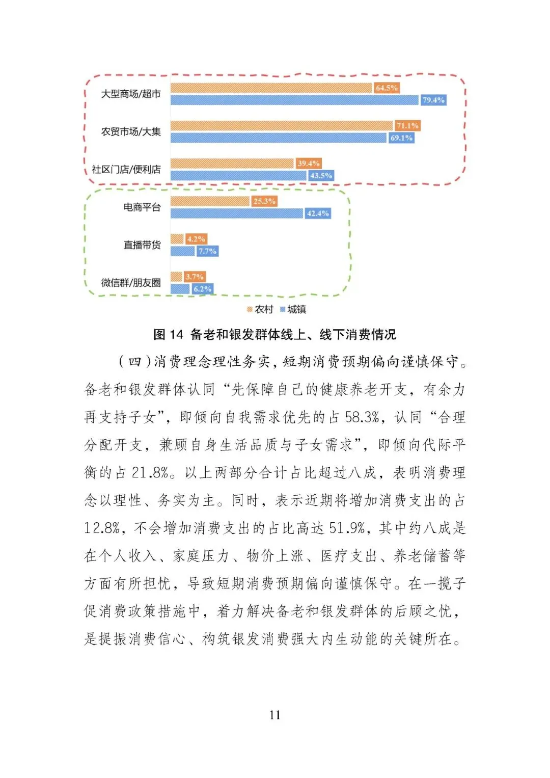 当前银发消费市场呈现需求旺盛、结构分化、渠道多元、理念趋稳的整体格局。十大消费赛道冷热不均,刚需板块稳健,新兴板块蓄力,服务消费滞后,线上线下并行,理性谨慎成为主流心态。大规模的需求缺口背后,是万亿级的市场潜力,银发经济正在从概念走向现实,从零散走向系统,从保障型走向品质型,成为推动经济增长的新动能。