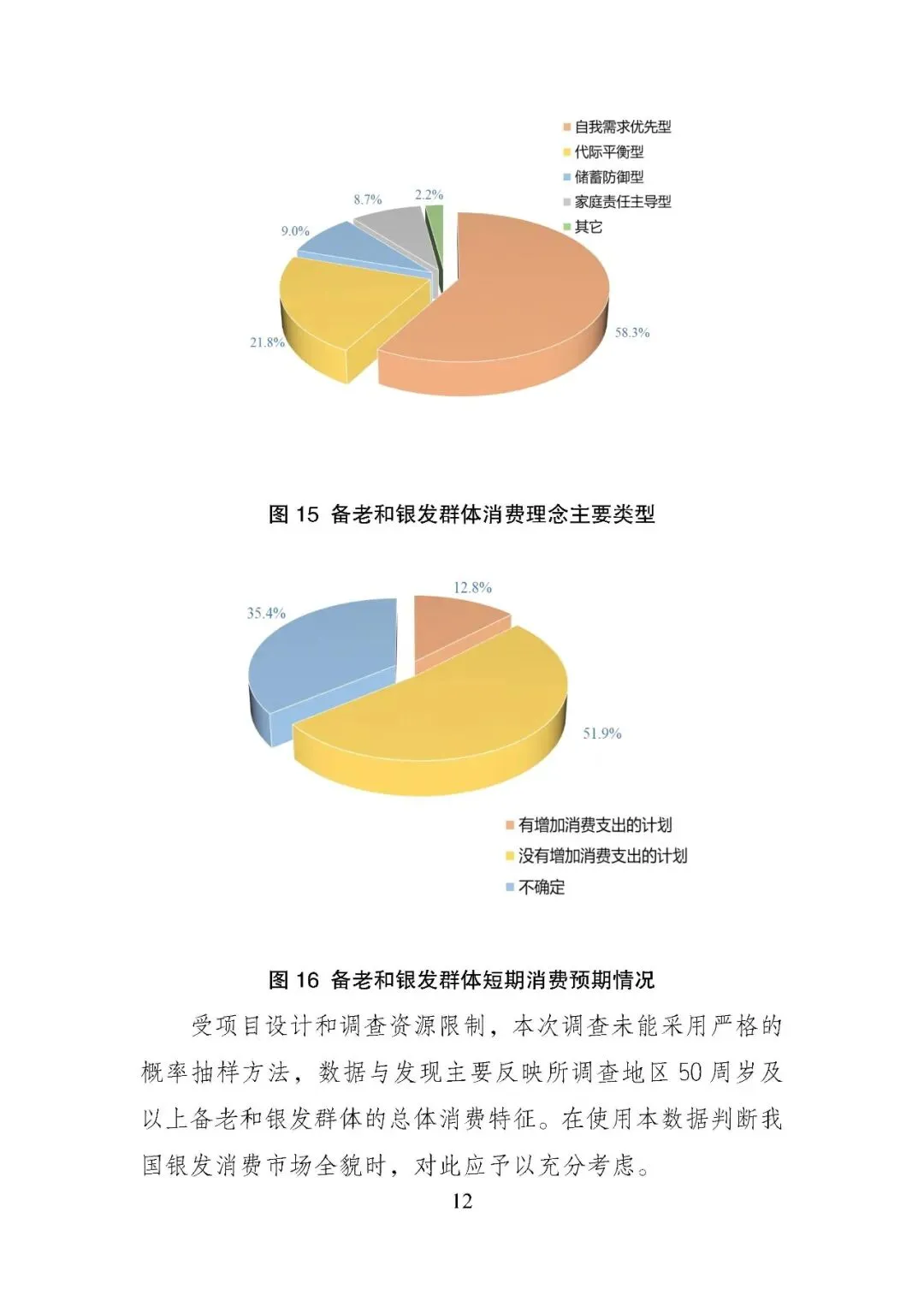 消费理念理性务实,短期预期偏谨慎。58.3% 的受访者认同先保障自身健康养老开支,有余力再支持子女,自我需求优先成为主流。21.8% 持代际平衡观念,合理分配兼顾自身与家庭。两者合计超过八成,理性务实占据主导。仅有 12.8% 表示近期计划增加消费,51.9% 明确不会增加支出,多数人对收入、家庭压力、物价、医疗支出、养老储备存在担忧。提升银发消费,核心是稳定预期、解除后顾之忧,让中老年群体敢消费、愿消费、能消费。
