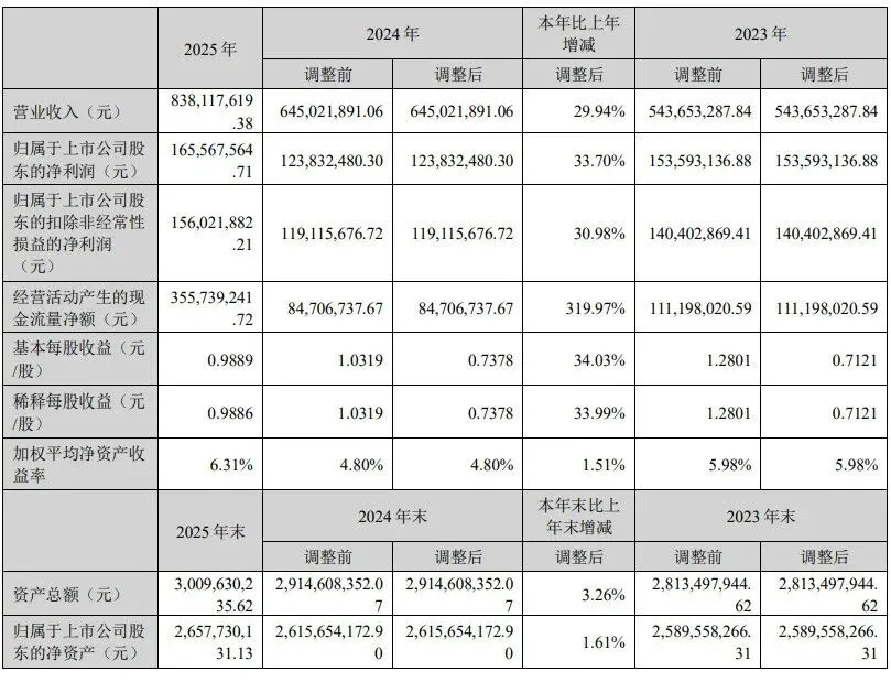 4月20日,北京百普赛斯生物科技股份有限公司发布2025年年报,报告期内,公司实现营收8.38亿,较去年同期增加29.94%,归属于上市公司股东的净利润1.66亿,较去年同期增加33.70%,经营活动产生的现金流量净额为3.56亿,较去年同期增加319.97%。