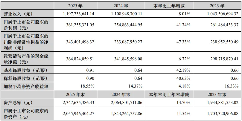 4月15日,厦门艾德生物医药科技股份有限公司发布2025年年报,报告期内,公司实现营收11.98亿,较去年同期增加8.01%,归属于上市公司股东的净利润3.61亿,较去年同期增加41.74%,经营活动产生的现金流量净额为3.65亿,较去年同期增加6.72%。
