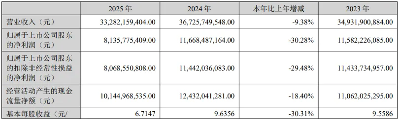3月30日,深圳迈瑞生物医疗电子股份有限公司发布2025年年报,报告期内,公司实现营收332.82亿,较去年同期减少9.38%,归属于上市公司股东的净利润81.36亿,较去年同期减少30.28%,经营活动产生的现金流量净额为101.45亿,较去年同期减少18.40%。