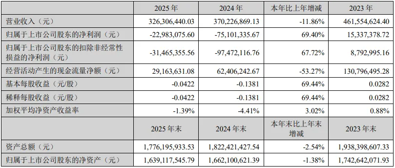 4月22日,江苏硕世生物科技股份有限公司发布2025年年报,报告期内,公司实现营收3.39亿,较去年同期减少3.02%,归属于上市公司股东的净利润-0.41亿,经营活动产生的现金流量净额为0.30亿,较去年同期减少79.21%。