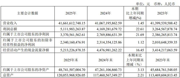3月24日,上海复星医药(集团)股份有限公司 发布2025年年报,报告期内,公司实现营收416.62亿,较去年同期增加1.45%,归属于上市公司股东的净利润33.71亿,较去年同期增加21.69%,经营活动产生的现金流量净额为52.13亿,较去年同期增加16.45%。
