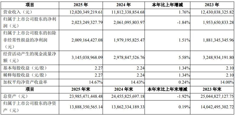 3月24日,丽珠医药集团股份有限公司发布2025年年报,报告期内,公司实现营收120.20亿,较去年同期增加1.76%,归属于上市公司股东的净利润20.23亿,较去年同期减少1.84%,经营活动产生的现金流量净额为31.45亿,较去年同期增加5.58%。