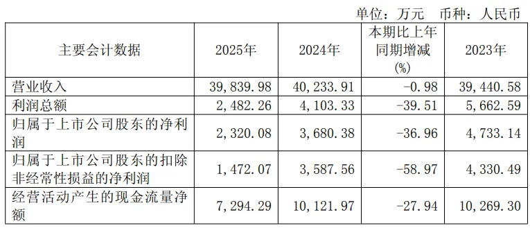 3月17日,江苏浩欧博生物医药股份有限公司发布2025年年报,报告期内,公司实现营收3.98亿,较去年同期减少0.98%,归属于上市公司股东的净利润0.23亿,较去年同期减少39.96%,经营活动产生的现金流量净额为0.73亿,较去年同期减少27.94%。