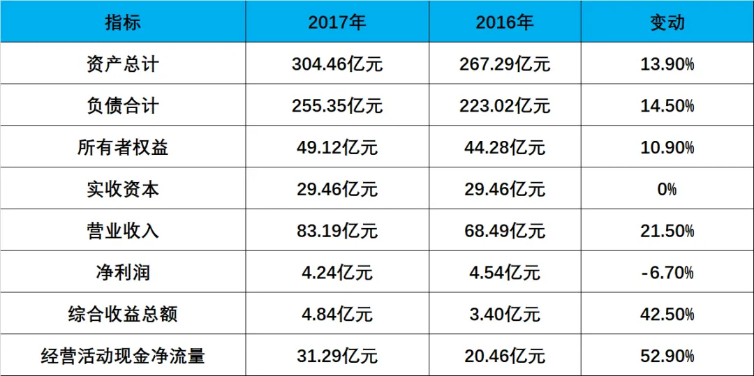 但最终净利润是4.24亿,比2016年少了0.3亿,下降6.7%。