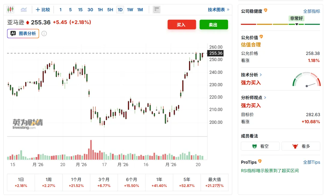 当前市场格局颇具看点:股价已大幅走高,技术面超买信号明显。但论及题材热度、上涨动能与执行力,能在财报前追高买入的标的中,亚马逊无疑是最具说服力的选择之一。