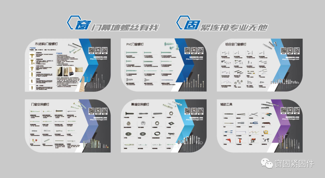窗固产品目前拥有四大系列(不锈钢系列,碳钢系列,锚固系列,辅助工具及其他非标系列),6千多个品种,产品还在进一步丰富和发展。为了更好的服务客户,公司不断丰富和完善自己的产品结构。