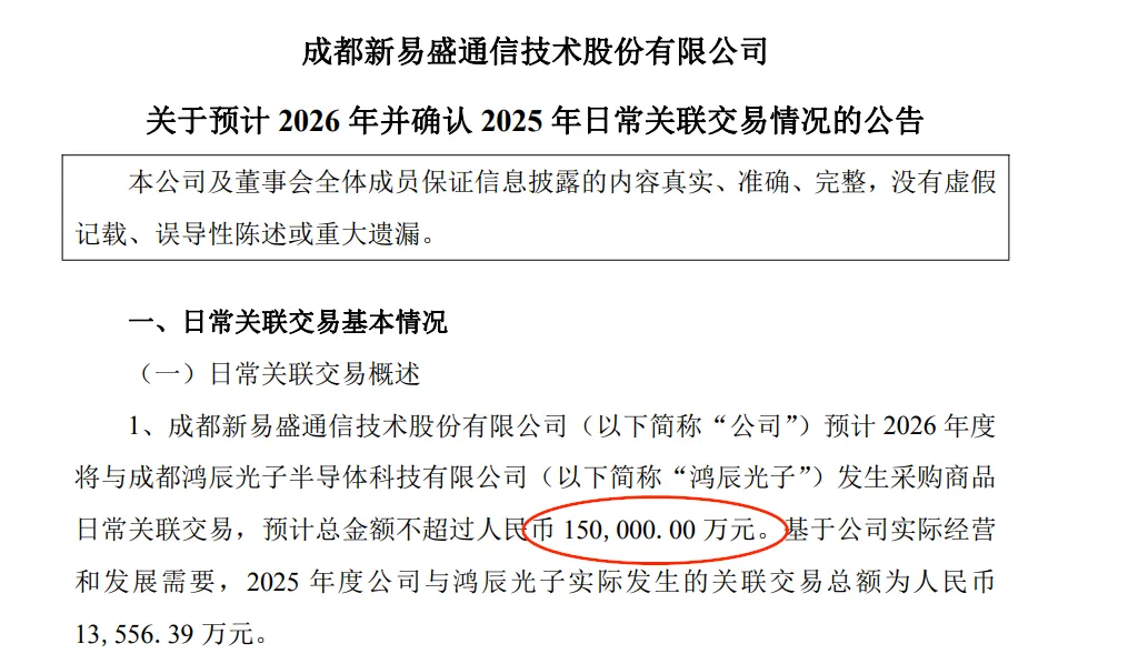 1. 新易盛公告称
