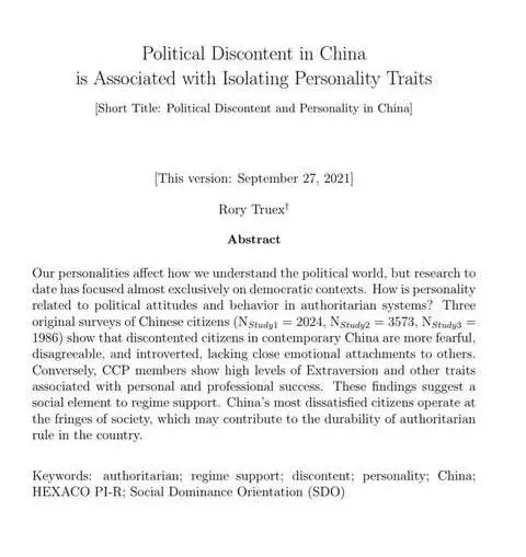 今天,作者翻到了普林斯顿大学学者罗里·特鲁克斯(Rory Truex)的一项调查研究。