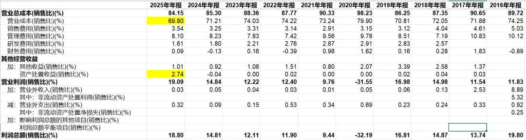 结论 结论:健盛集团在2025年如此恶劣的外贸环境下保住营收,并且净利润取得增长(即使去除资产处置收益),相当不容易!营业成本省25百万,资产处置收益70百万,2025年净利润多80百万! |