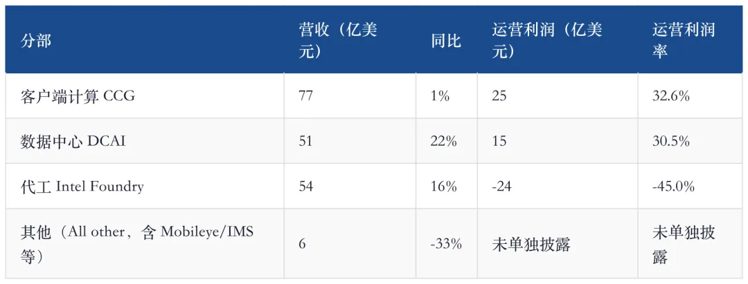 CCG 同比只涨 1% 的另一层原因:2025 年 Q1 有一部分 Xeon 工作站 SKU 被划进 CCG 口径,今年 Xeon 600 系列被重新划进 DCAI。这个分部边界的调整拉低了 CCG 的同比数字、抬高了 DCAI 的基数,但对合并报表没有影响。