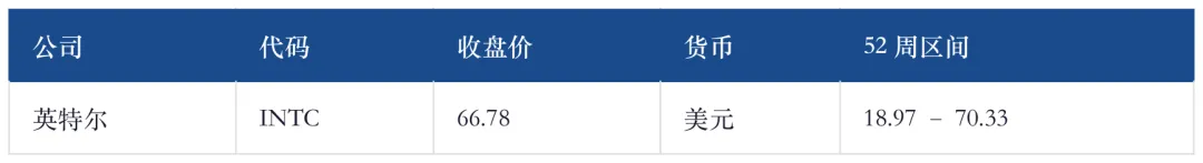 1 年涨幅的意义: 英特尔 52 周低点是 2025-04-08 的 18.97 美元,当时市场对英特尔的共识是"18A 可能失败 + Foundry 资本开支无底洞 + 客户端市场被 AMD 和苹果瓜分"。52 周高点 70.33 美元,从低点到高点 1 年内涨幅 270%。同期 NVIDIA 涨幅约 35%、AMD 涨幅约 40%。