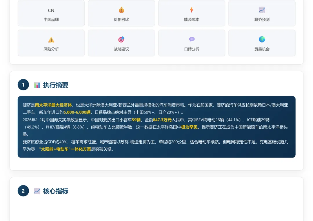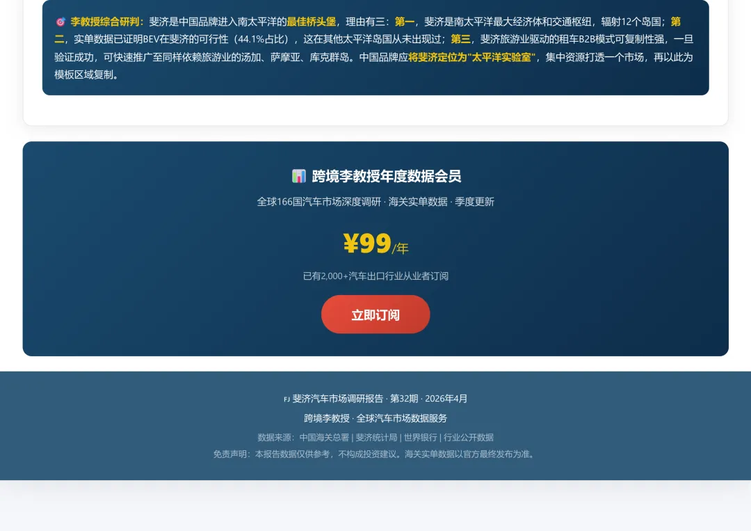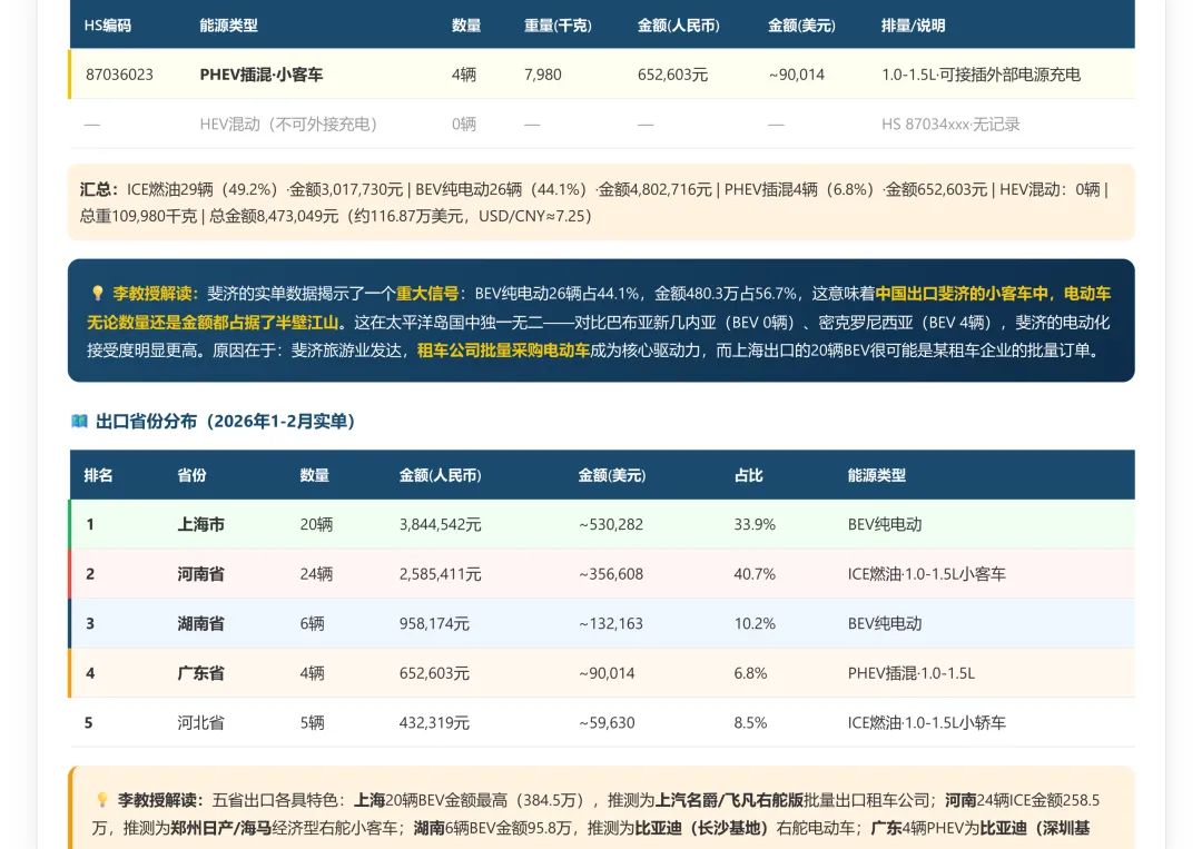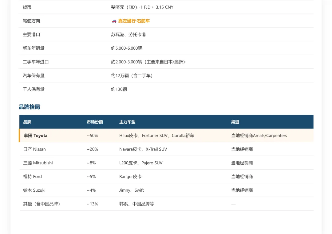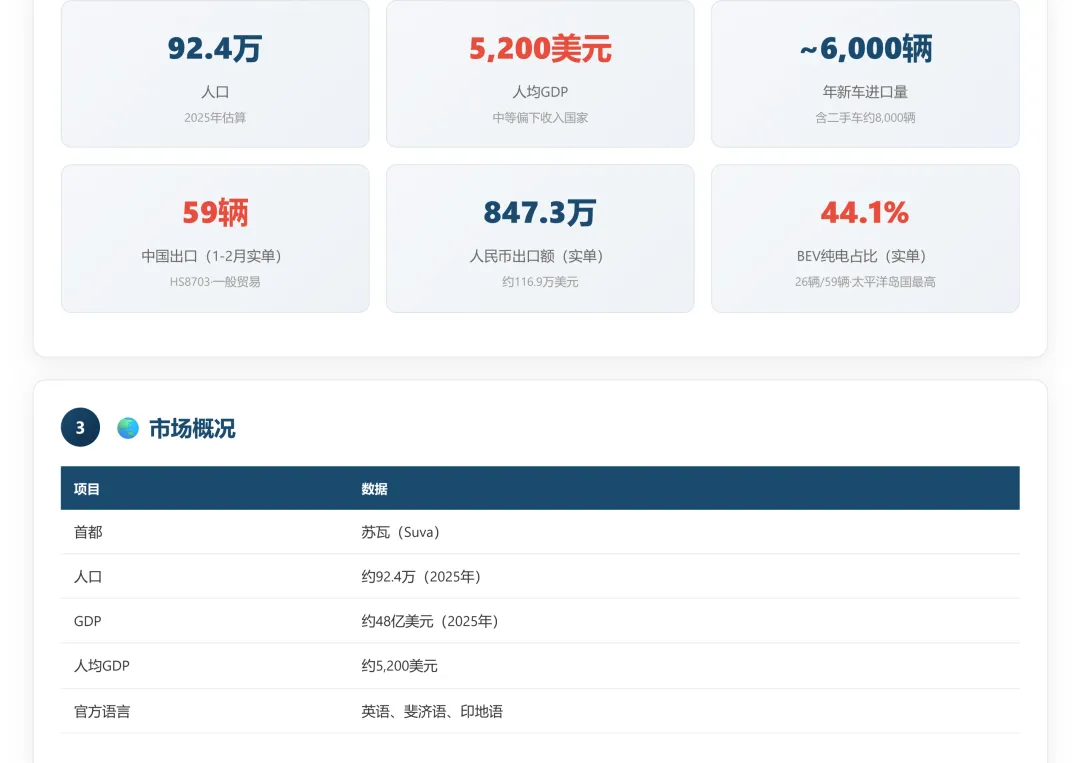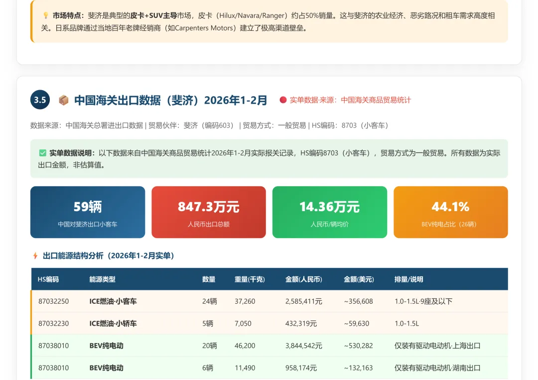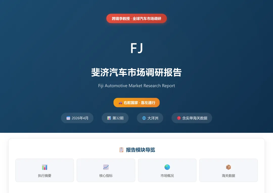斐济汽车市场调研报告和26年1-2月海关出口数据