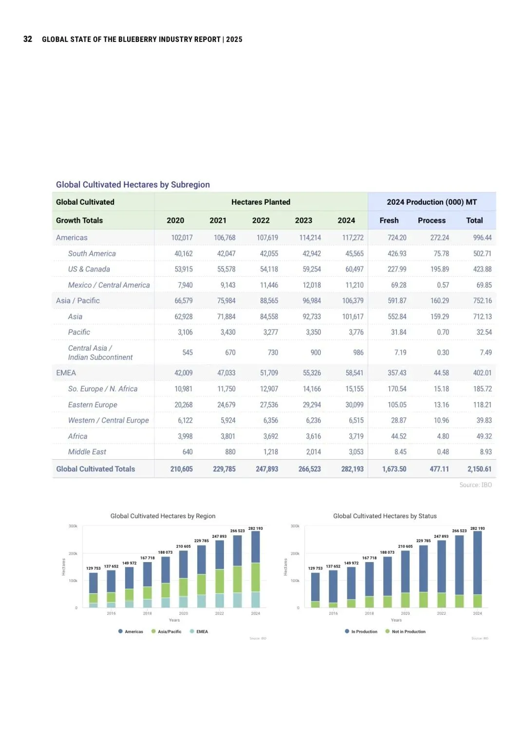 2025国际蓝莓组织产业报告,我用微信自动翻译了一下,原文与翻译放在了一起。该部分讲的是全球产业状况,里面只是全球内容,具体到某一个地区的由于篇幅限制没有放进去,有需要原文的私聊我。