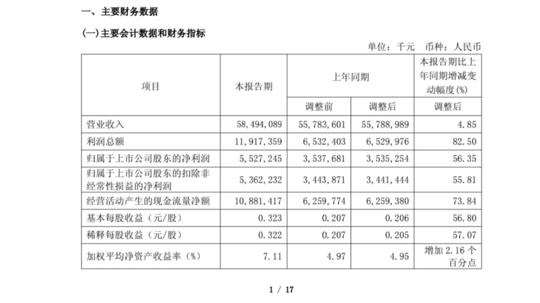营收增加5%,归母净利润增加56%。