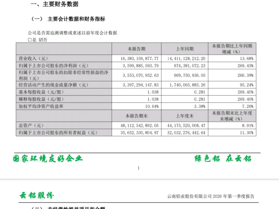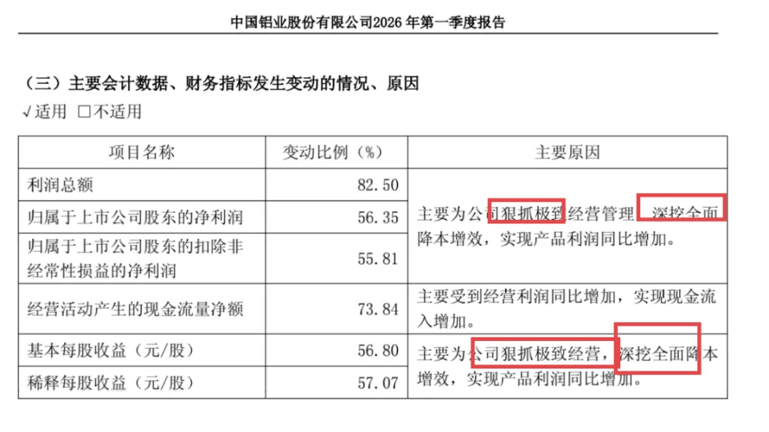 全面极致深挖狠抓铝发布了2026年一季报: