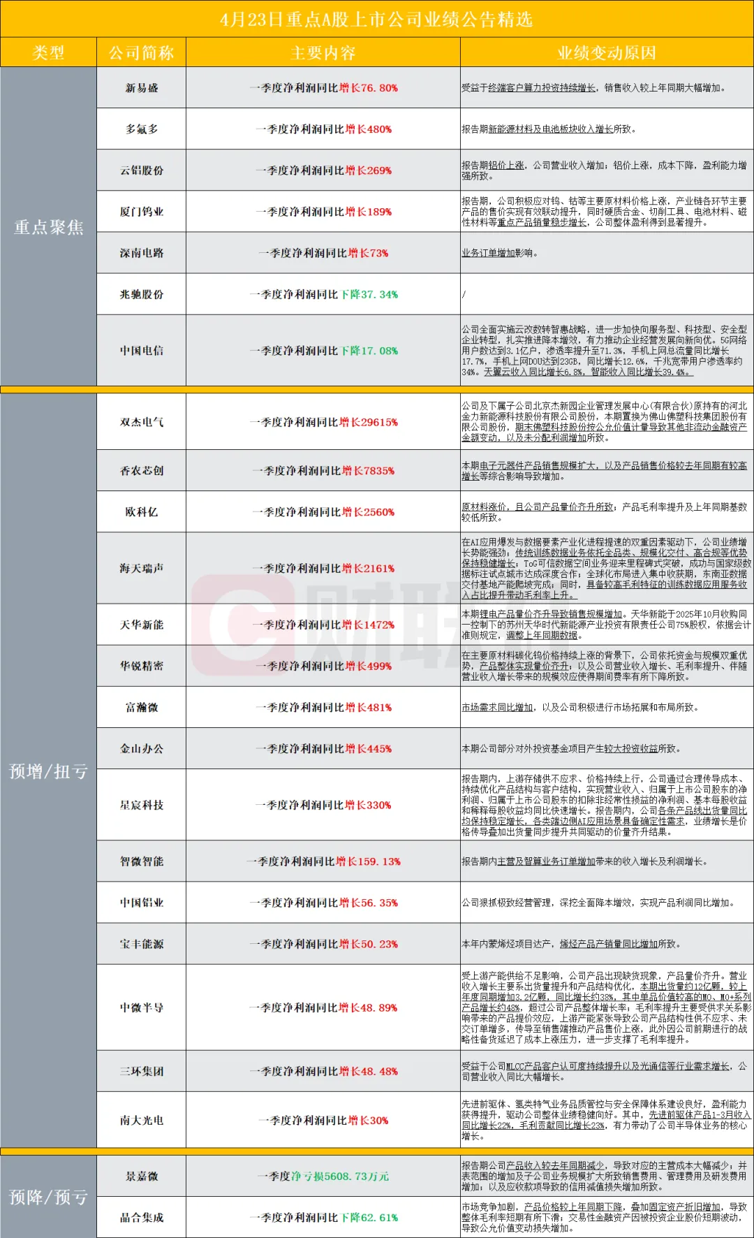 其他发布业绩的企业: