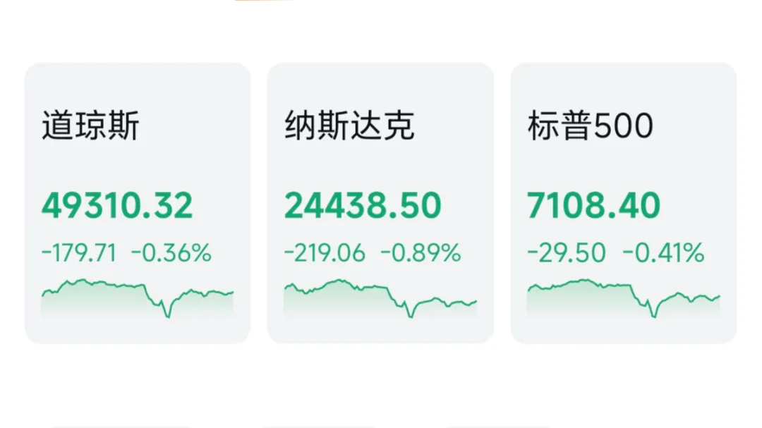 美三大股指回调。