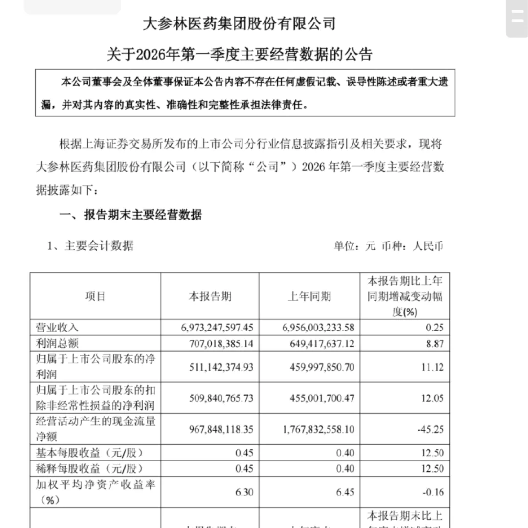 某药房龙头企业发布了2025年报及2026一季报: