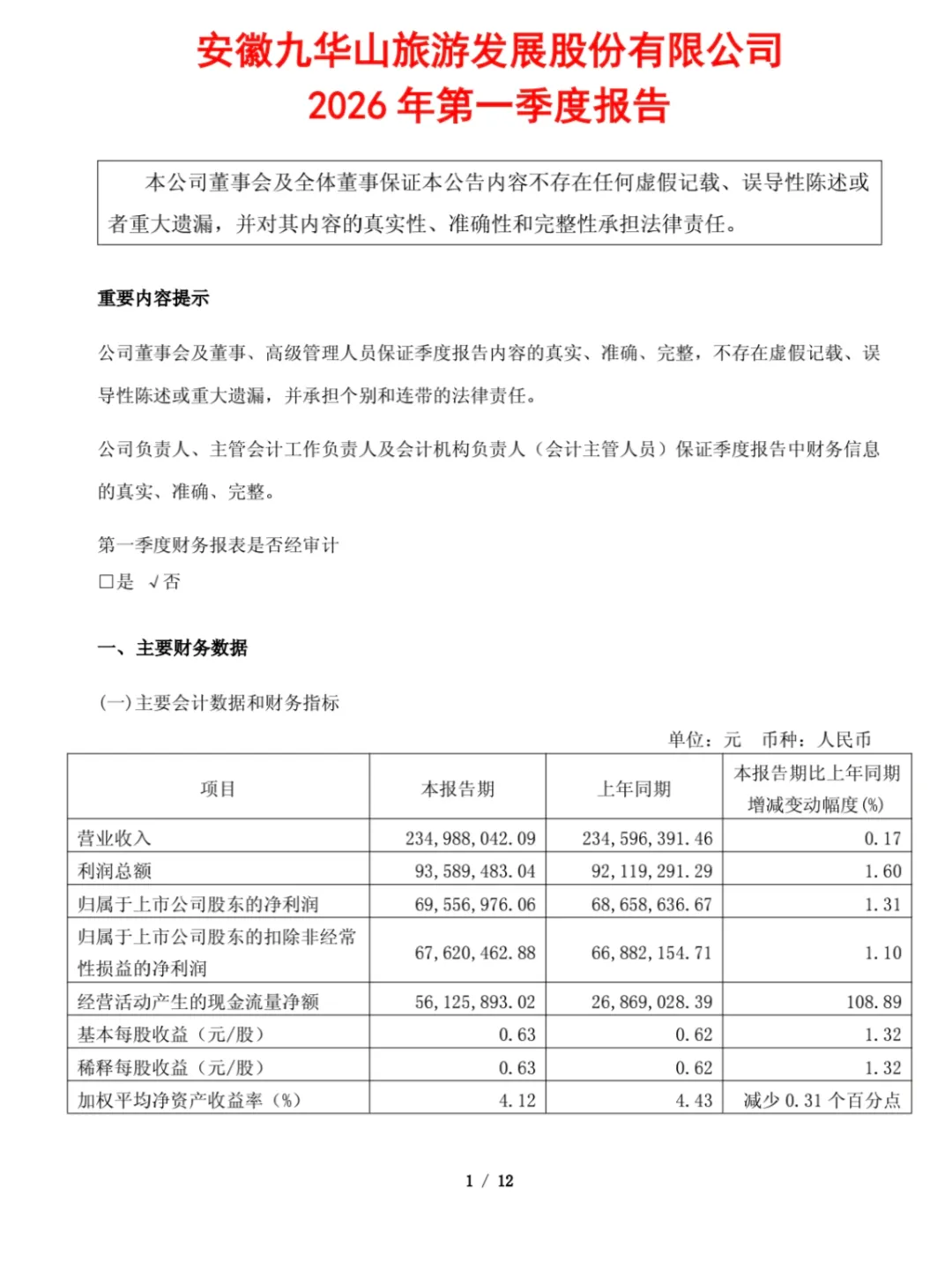 2,2026年一季度营业收入和净利润创上市以来新高。