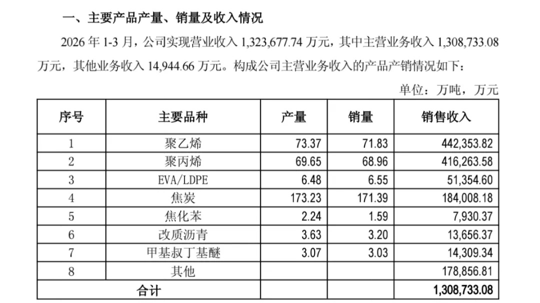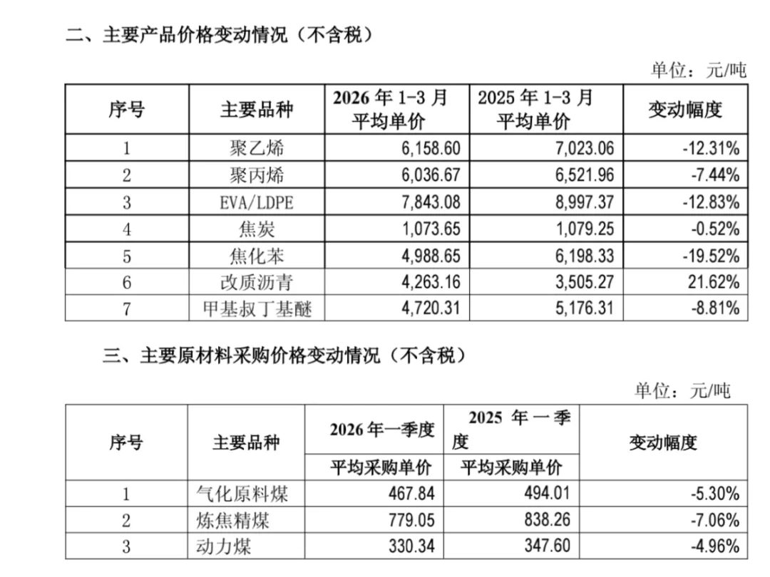 某煤化工龙头发布2026年一季报: