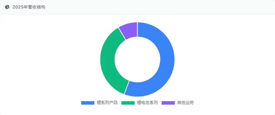 锂电池系列是赣锋锂业的第二增长曲线,2025年实现营收82.34亿元,占总营收比重35.67%,同比增长39.63%,增速显著高于锂系列产品。锂电池业务已形成动力电池、储能电池、消费电池三大细分领域,其中储能电池是增长最快的细分领域。