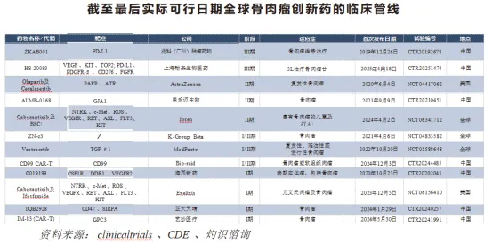 (三)截至最后实际可行日期全球骨肉瘤创新药的临床管线