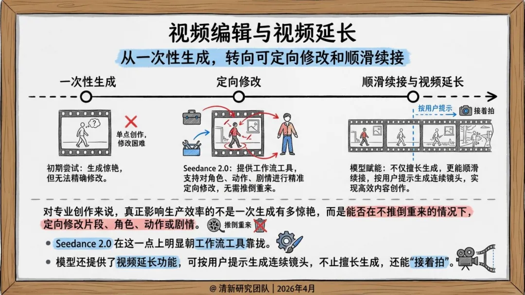 视频编辑与延长:支持定向修改和顺滑续接,实现“接着拍”