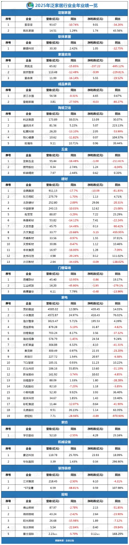 美的、海尔、小米确实在狂飙,那是巨头们的游戏。你往下看,美凯龙亏了237个亿,江山欧派利润跌了279%。