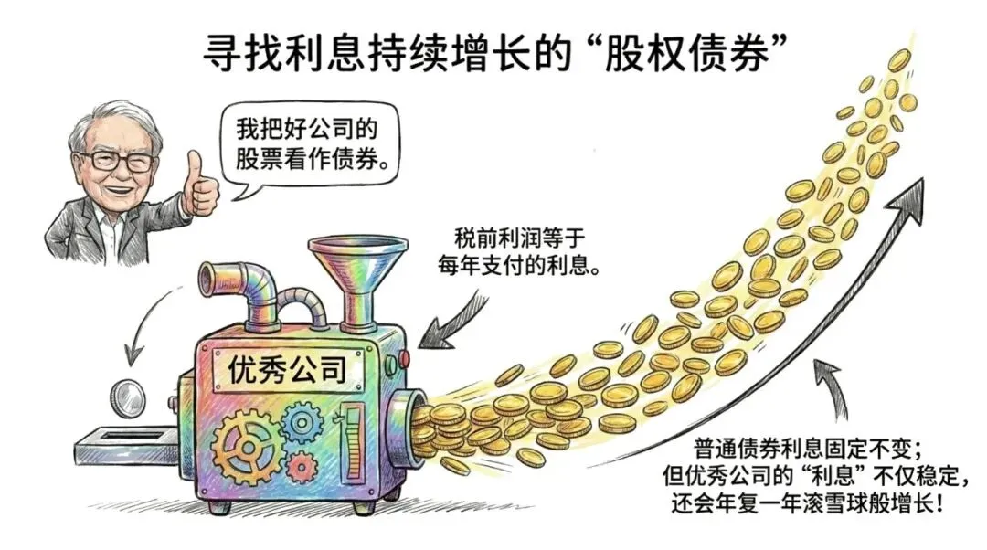 “好公司的股票,就是一张利息永远在上涨的超级债券。”