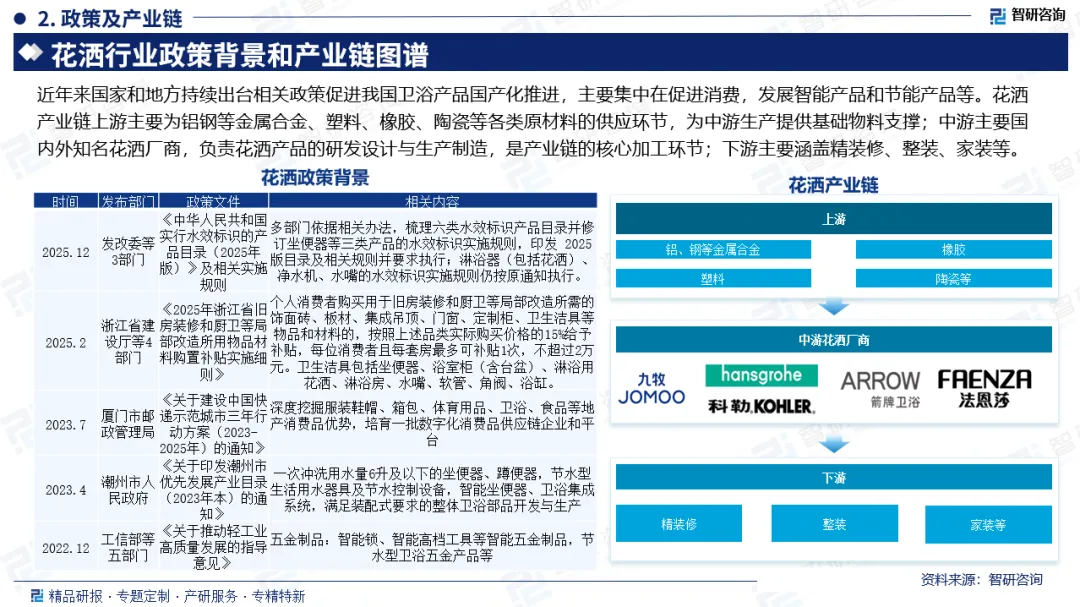为探究花洒行业变化趋势(怎么变)、用户需求(要什么)、投放选择(投向哪)、运营方法(如何投)及实践案例(看一看),智研咨询发布了《2026-2032年中国花洒行业市场调查研究及发展前景规划报告》。