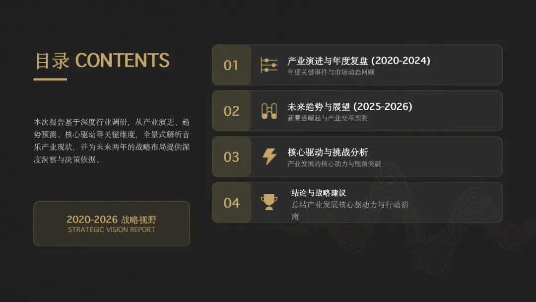 本系列报告强调专题深描与样本观察,呈现音乐产业运行中的结构性变化与新兴趋势,同时作为青年研究学者进入产业研究体系的基础性训练单元。