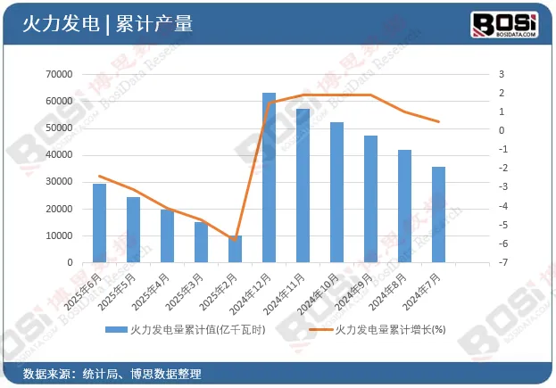 单月增速波动中探底回升:2025年3、4月单月同比降幅较大(-2.3%),但5、6月已转正(1.2%、1.1%),反映出火电在迎峰度夏等用电高峰期的“托底保供”作用不可或-缺,但其增长动能已大幅减弱。