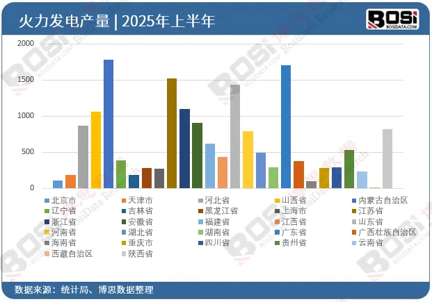 核心产区地位稳固:内蒙古自治区(月产约450亿千瓦时)、江苏省、山东省、广东省是火电生产的四大重镇。其中,内蒙古作为能源基地,承担电力外送重任;苏、鲁、粤则是经济大省,自身用电需求旺盛。