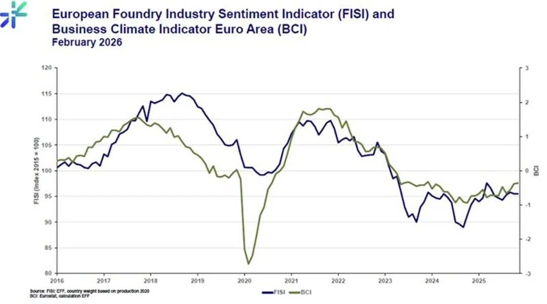 该指数由欧洲铸造业联合会(EFF)每月发布一次。2026年2月,FISI指数为95.5点,与上月持平。