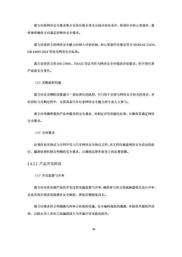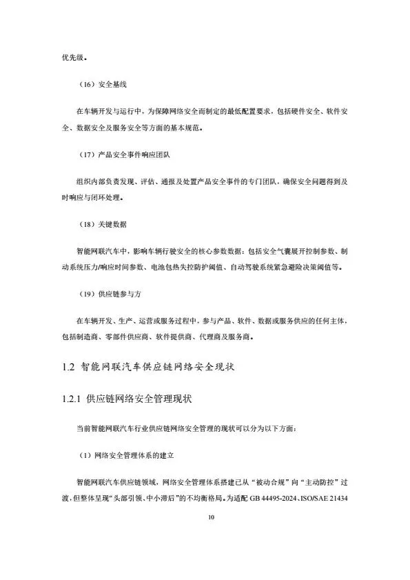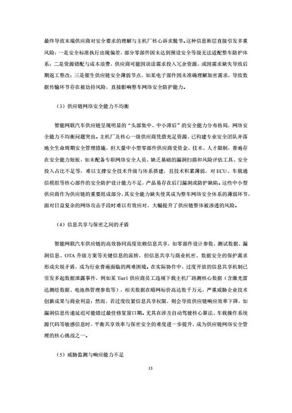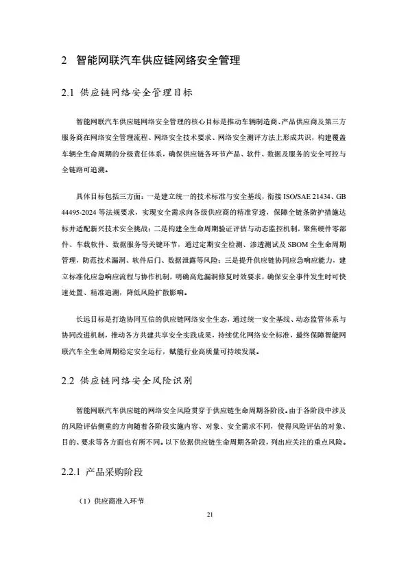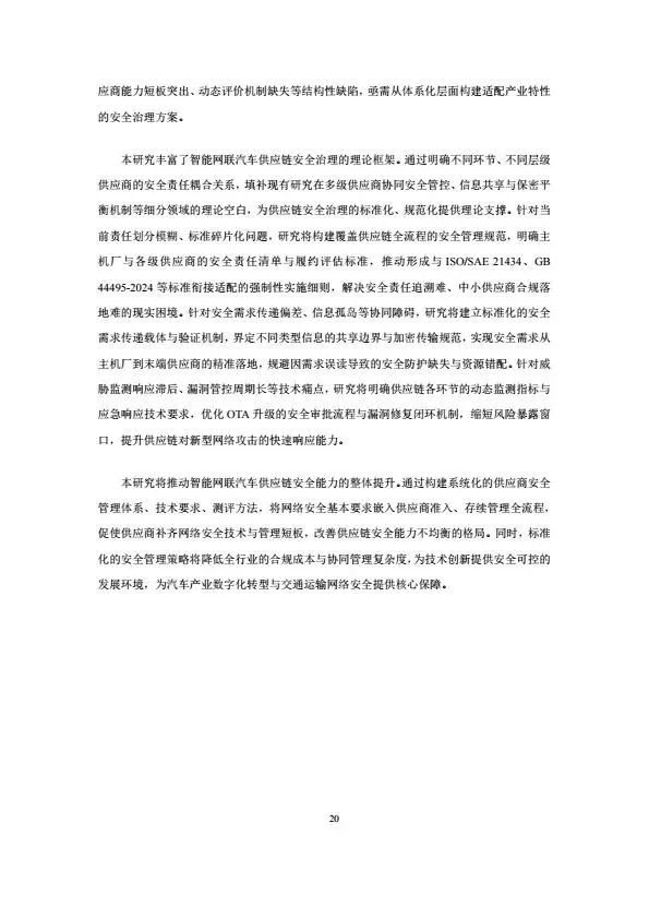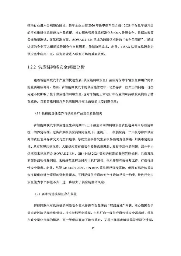 摘要:随着智能网联汽车的快速普及,供应链网络安全成为行业核心风险点,全生命周期的安全管控成为刚需。《智能网联汽车供应链网络安全研究报告》系统梳理产业安全体系:针对供需双方,覆盖采购、开发、生产、交付、运维到产品废止的全生命周期,明确ISO/SAE21434、GB44495等合规标准,详解供应商安全评估、漏洞协同响应、应急处置机制等落地路径,帮助车企与零部件供应商构建全链条安全防护,为行业从业者提供安全建设参考。