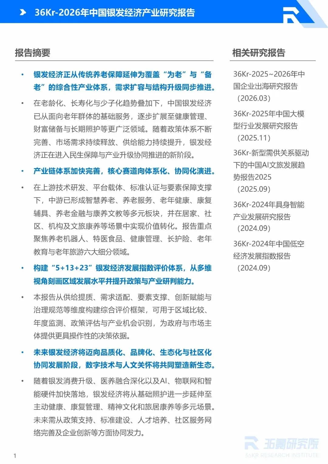 报告延伸:2026年中国银发经济产业研究报告 出 品 方:36Kr