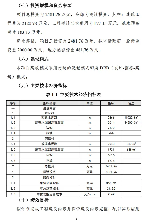 需求分析:基于实地调研,分析当地基础设施缺口和群众需求 建设内容和规模:明确具体建设任务(如道路、排水、垃圾池、路灯等) 产出方案:说明项目建成后的预期效益