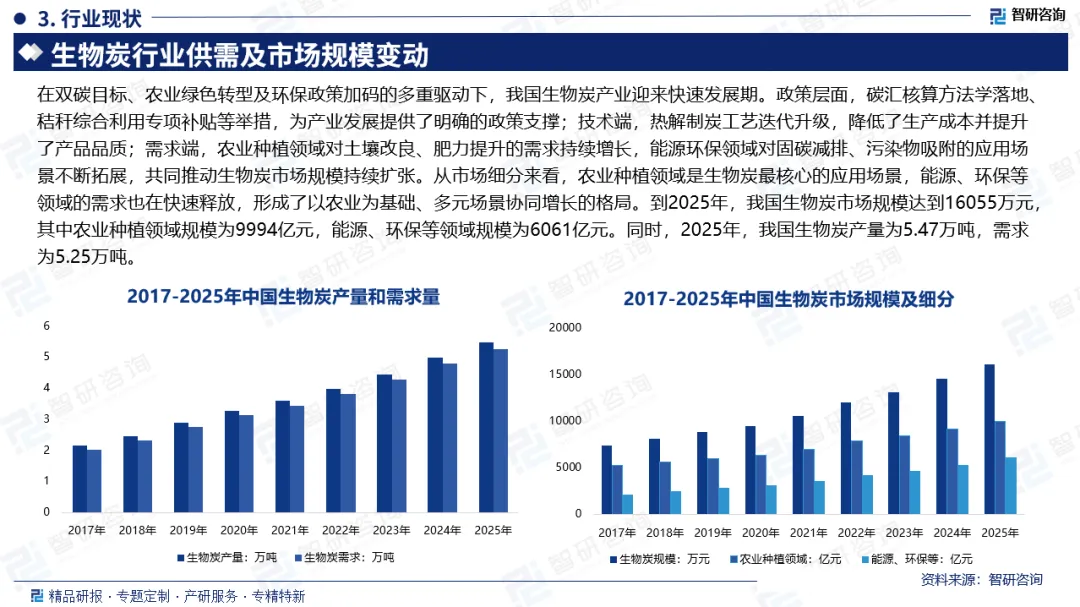 为探究生物炭行业变化趋势(怎么变)、用户需求(要什么)、投放选择(投向哪)、运营方法(如何投)及实践案例(看一看),智研咨询发布了《2026-2032年中国生物炭行业发展现状调查及市场分析预测报告》。
