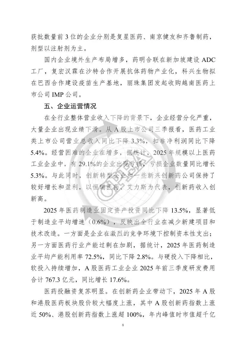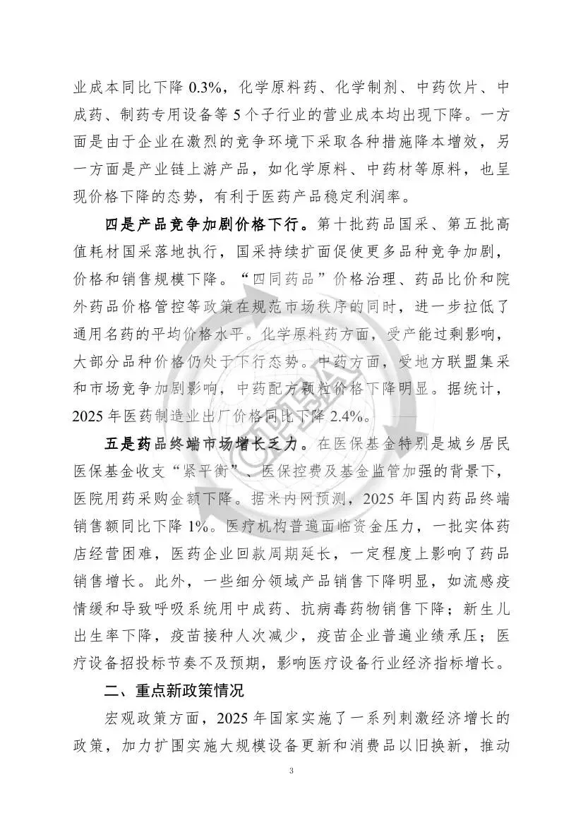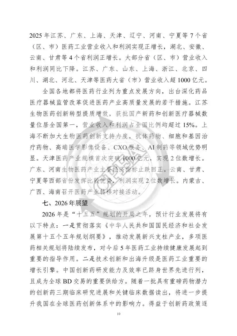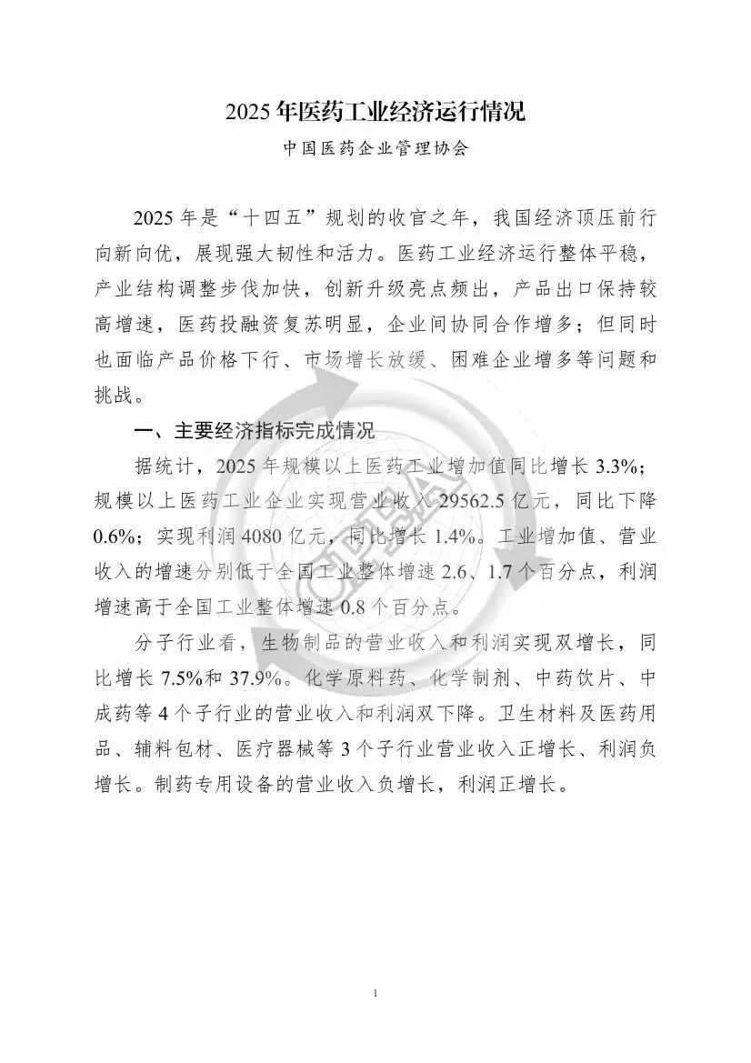 3月27日,中国医药企业管理协会官网发布了《2025年医药工业经济运行情况》报告。2025年是“十四五”规划的收官之年,该报告从主要经济指标完成情况、重点新政策情况、技术创新进展、国际化发展情况、企业运营情况、区域发展情况、2026年展望等几个方面进行了医药工业运行情况分析和预测。官网可下载全文。